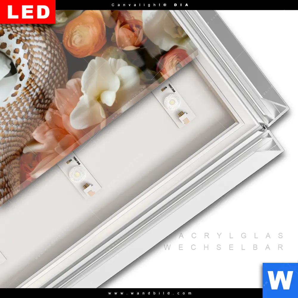 LED-Glasbild mit austauschbarem Acrylglas-Druck (Wechselbild)