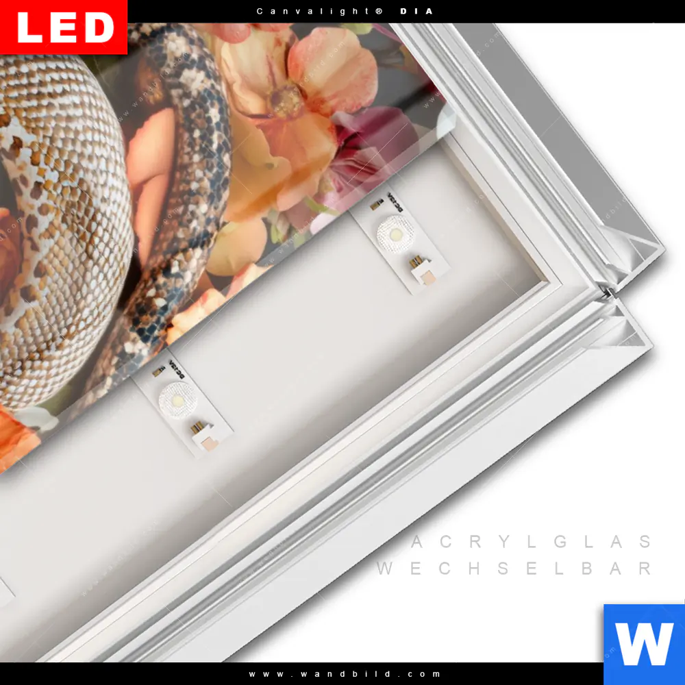 Leuchtbild Acrylglas Canvalight® DIA | Die Schlange - Verführerische Tarnung | Schmal