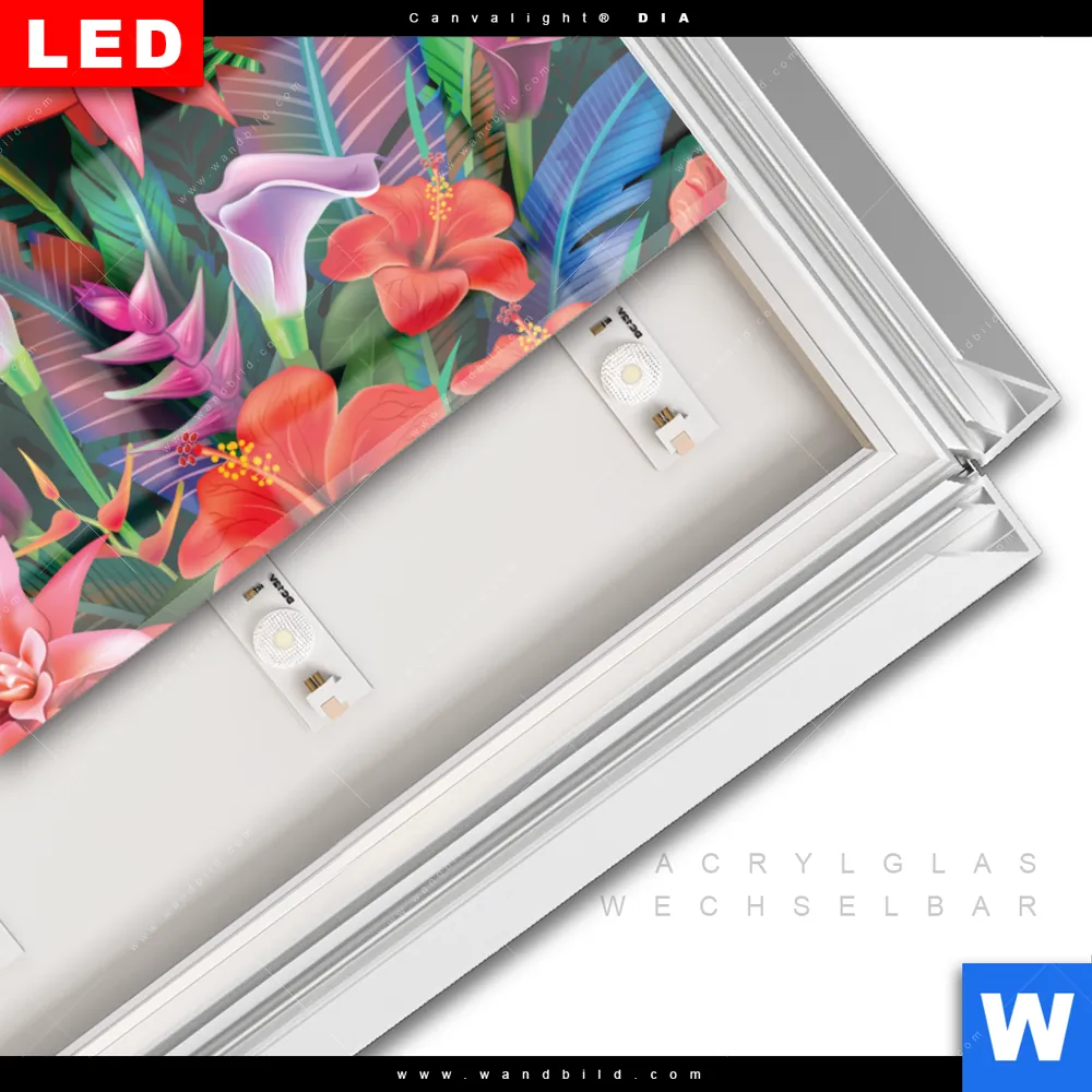 LED-Glasbild mit austauschbarem Acrylglas-Druck (Wechselbild)