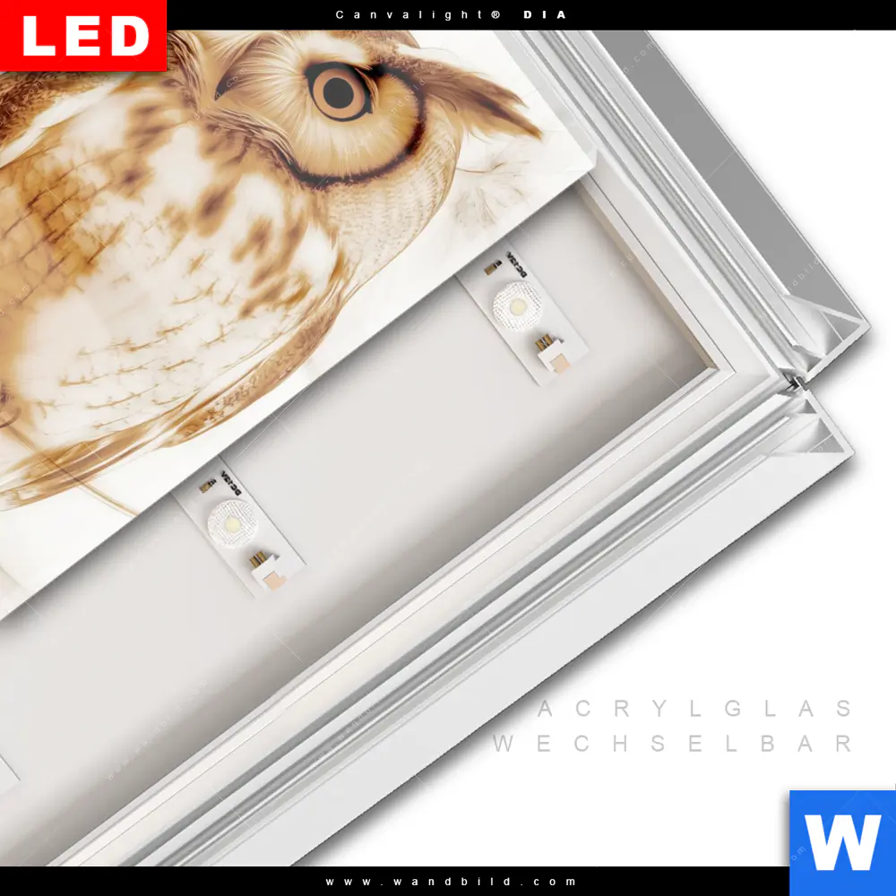 LED-Glasbild mit austauschbarem Acrylglas-Druck (Wechselbild)