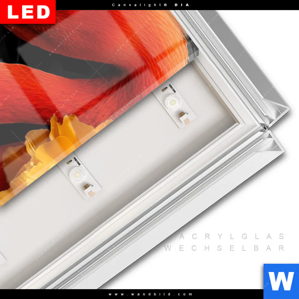 LED-Glasbild mit austauschbarem Acrylglas-Druck (Wechselbild)