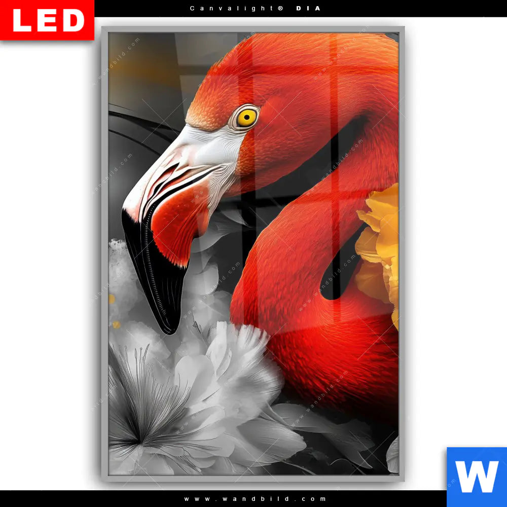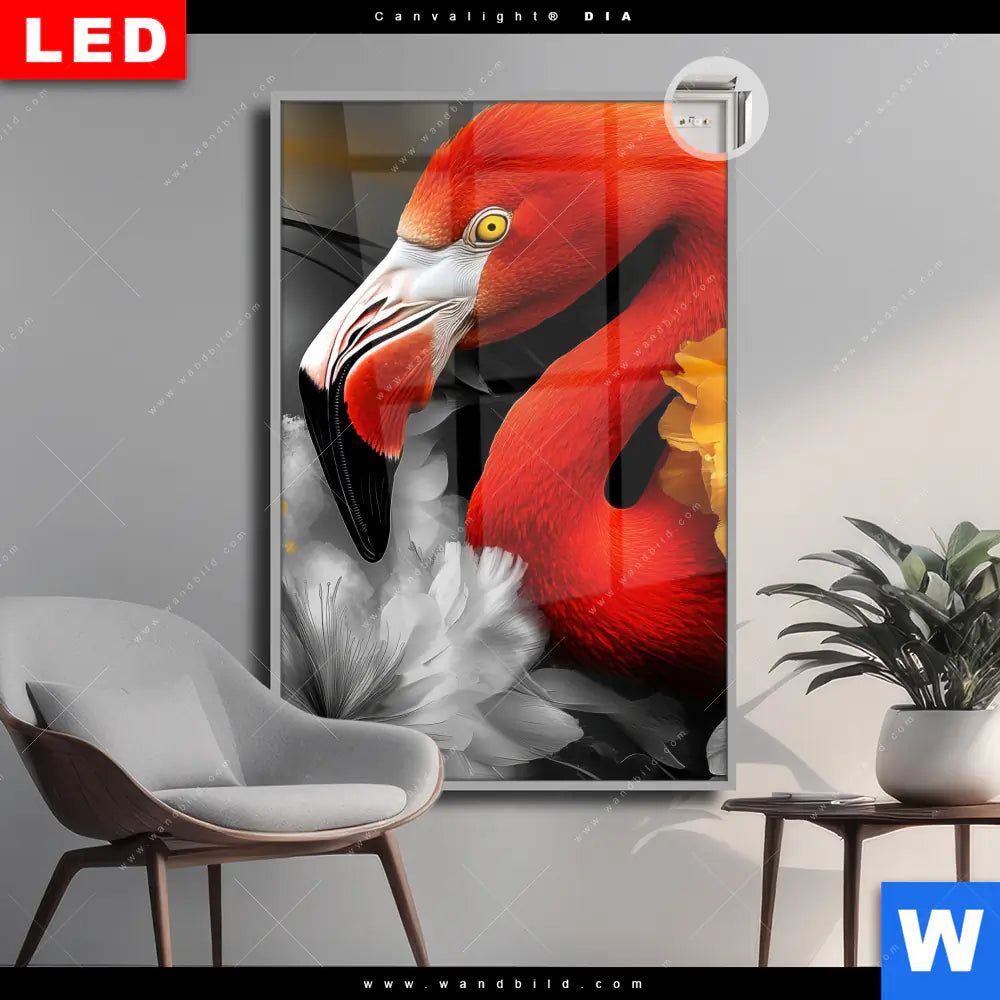 Leuchtbild Acrylglas Canvalight® DIA | Flamingo & Blüten | Hochformat