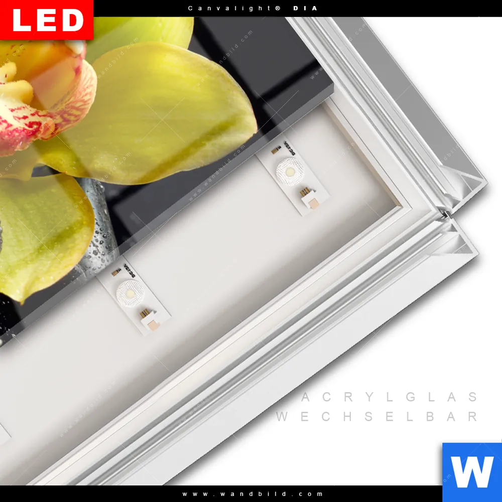 LED-Glasbild mit austauschbarem Acrylglas-Druck (Wechselbild)