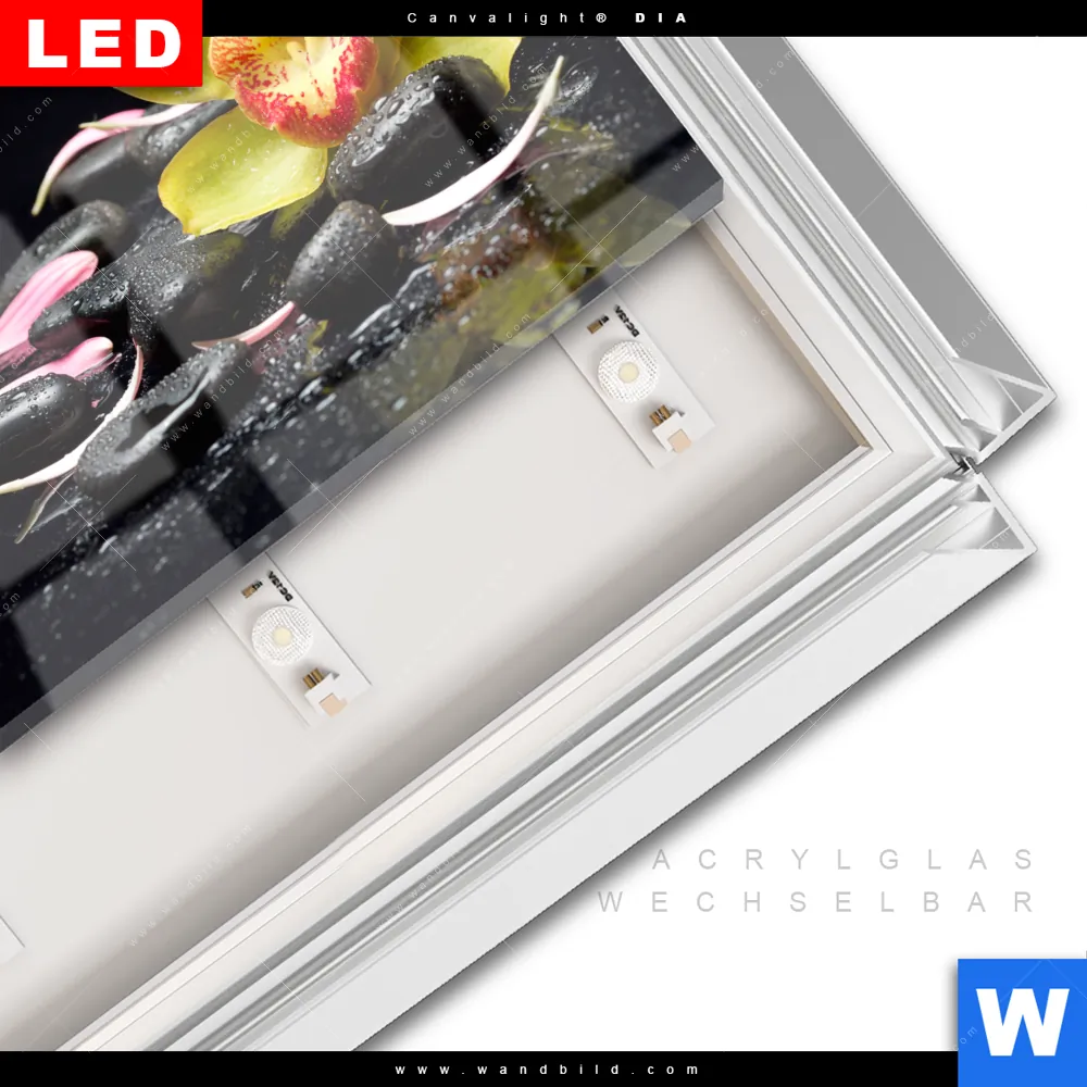 LED-Glasbild mit austauschbarem Acrylglas-Druck (Wechselbild)