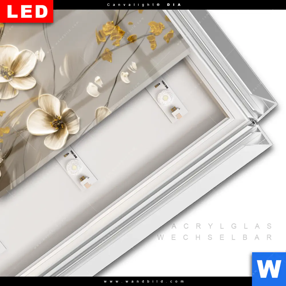 LED-Glasbild mit austauschbarem Acrylglas-Druck (Wechselbild)