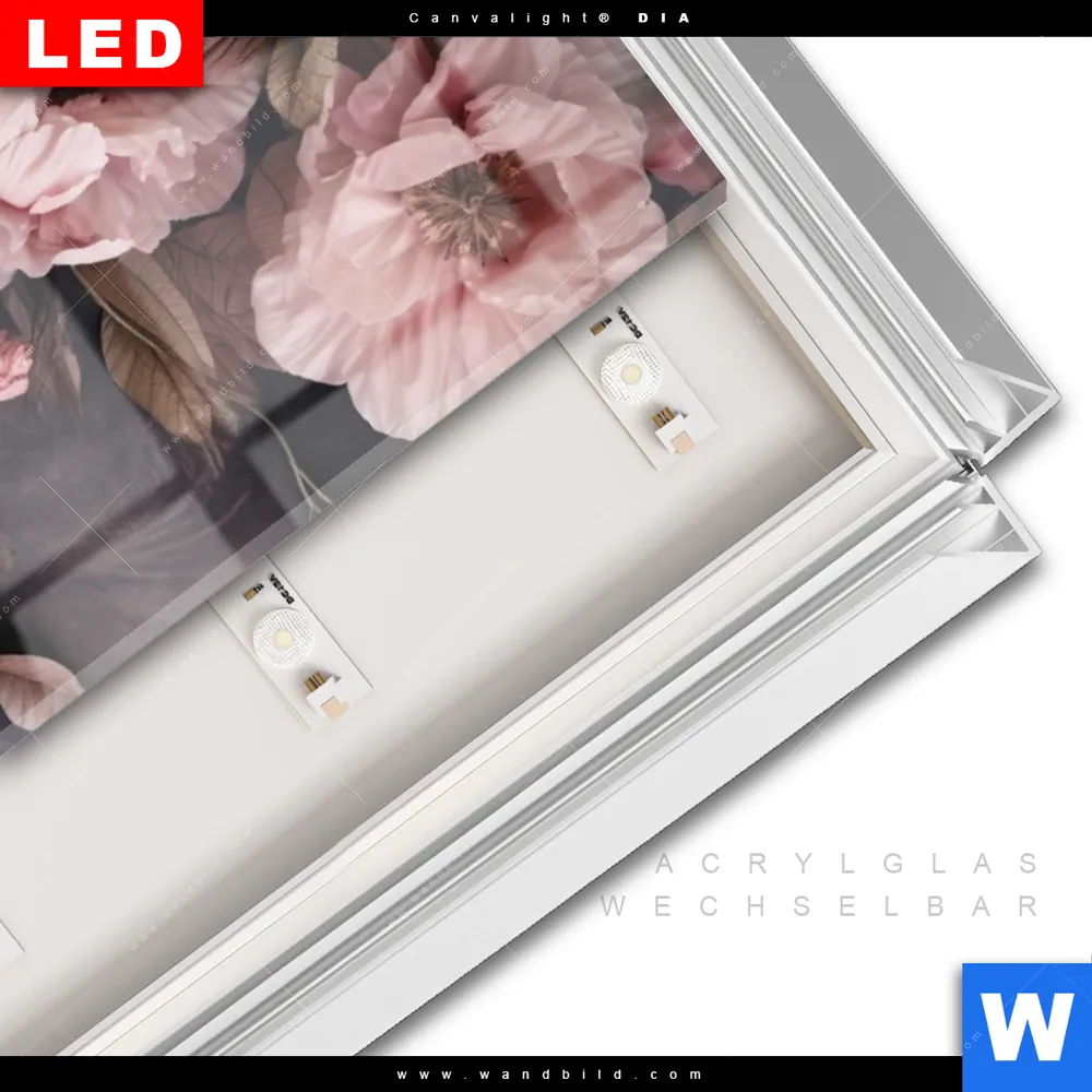 LED-Glasbild mit austauschbarem Acrylglas-Druck (Wechselbild)