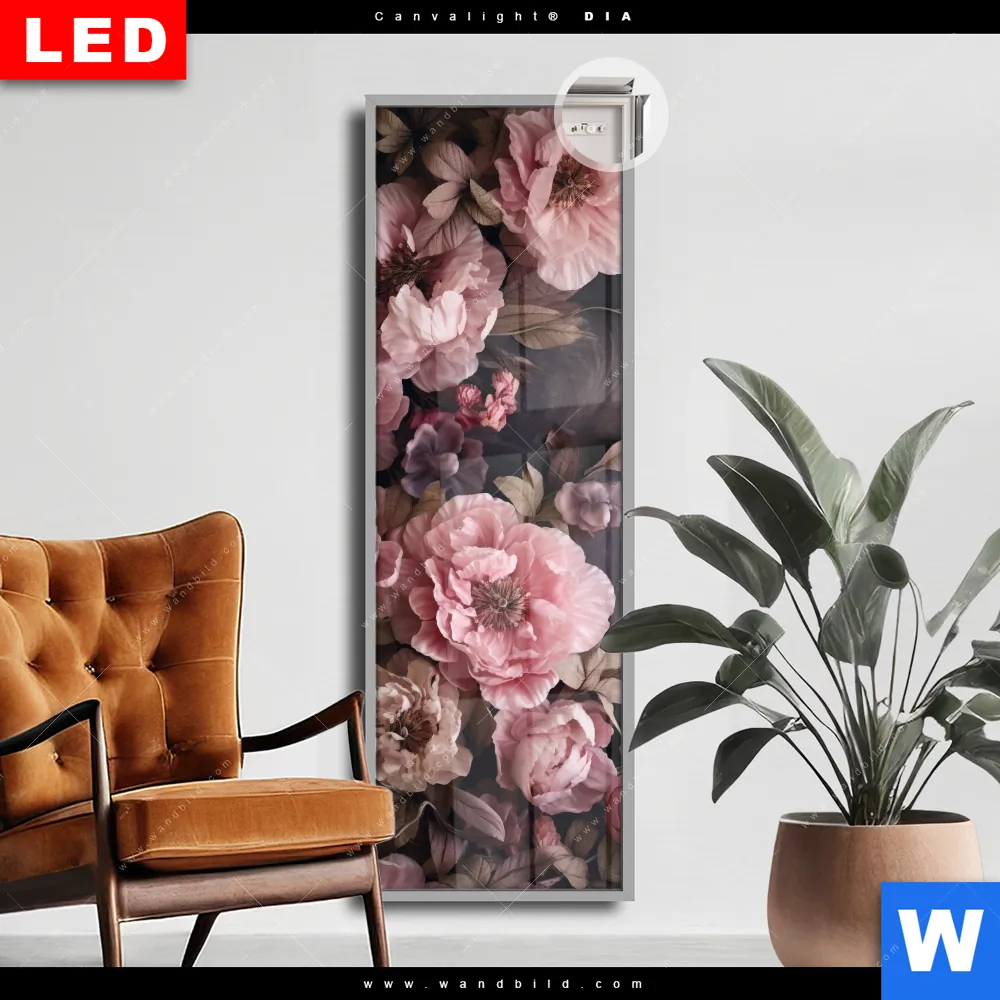 Canvalight® DIA Leuchtbild | Hellrosa Blumen | Schmal