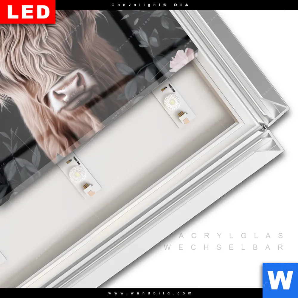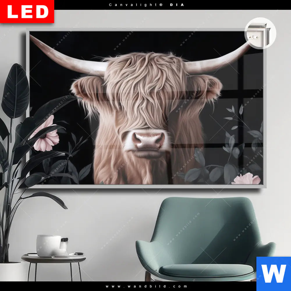 Canvalight® DIA Leuchtbild | Hochlandrind - Wilde Schönheit | Querformat
