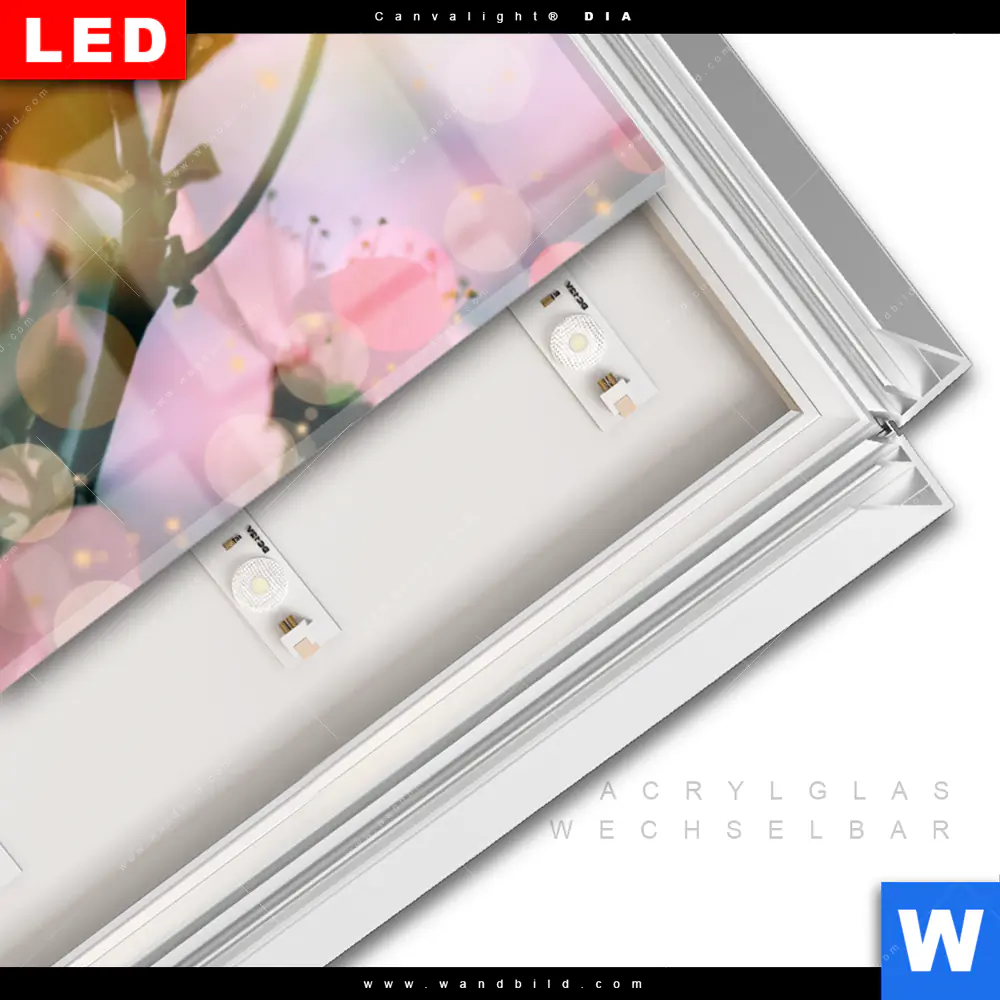 LED-Glasbild mit austauschbarem Acrylglas-Druck (Wechselbild)
