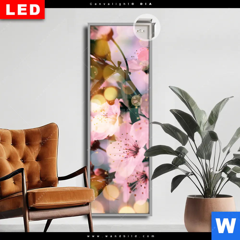 Canvalight® DIA Leuchtbild | Kirschblüten im Frühlingslicht | Schmal