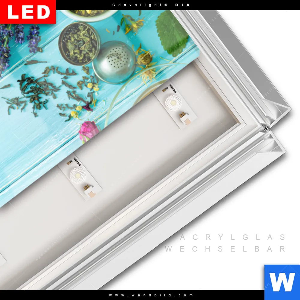 LED-Glasbild mit austauschbarem Acrylglas-Druck (Wechselbild)
