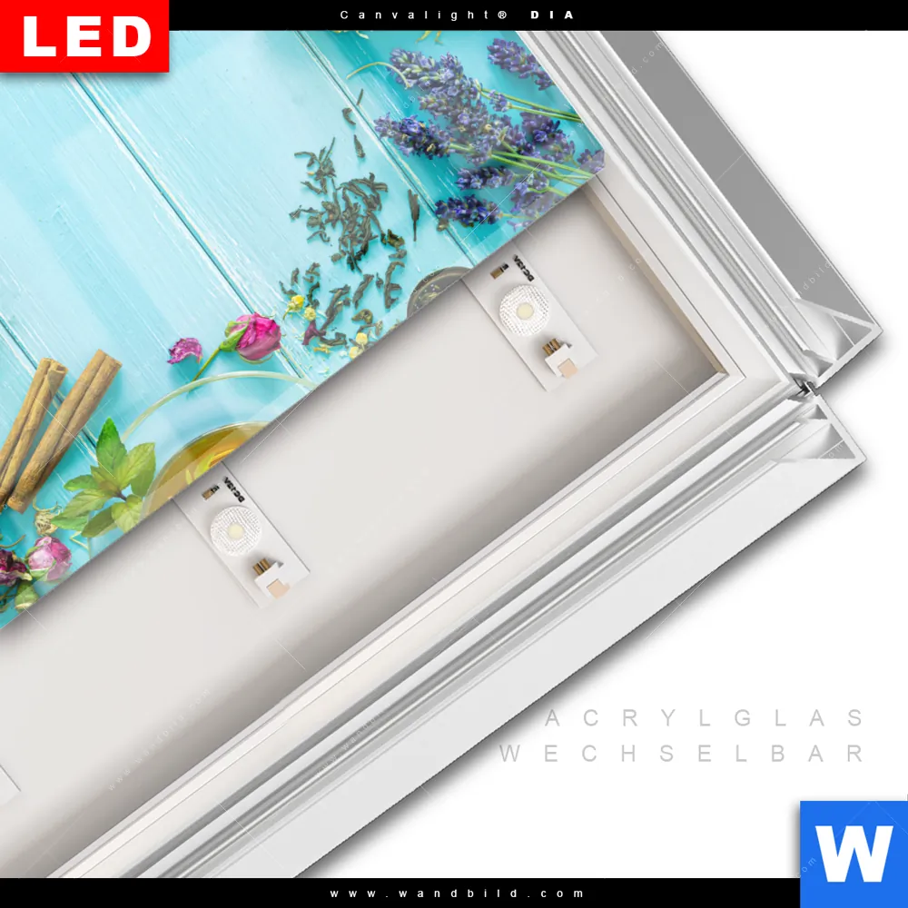 LED-Glasbild mit austauschbarem Acrylglas-Druck (Wechselbild)