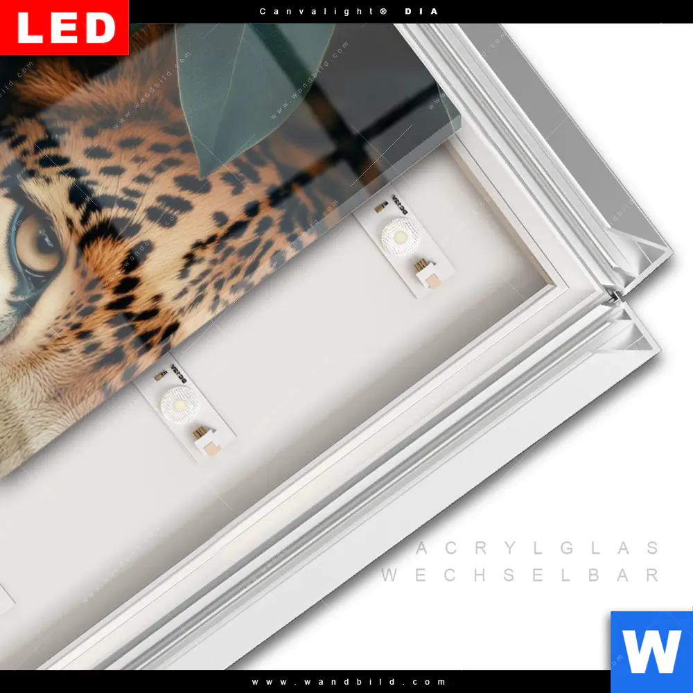 LED-Glasbild mit austauschbarem Acrylglas-Druck (Wechselbild)
