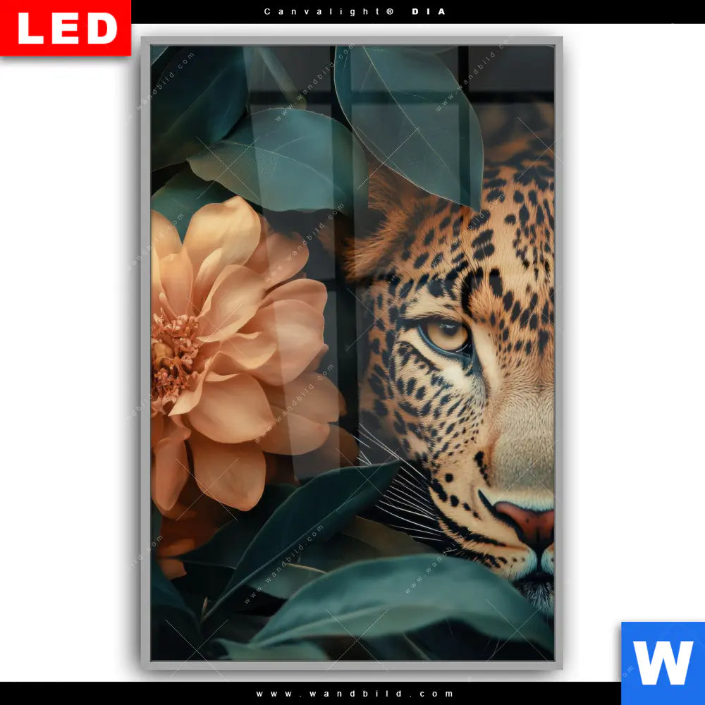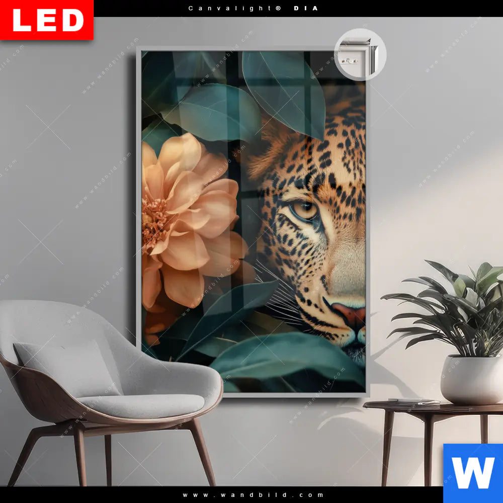 Canvalight® DIA Leuchtbild | Leopard im Blütenmeer | Hochformat