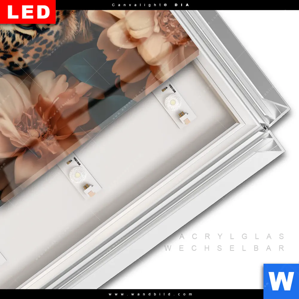 LED-Glasbild mit austauschbarem Acrylglas-Druck (Wechselbild)