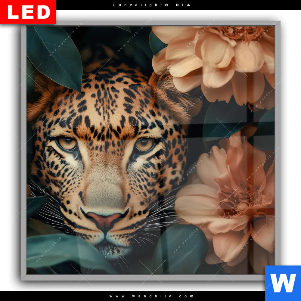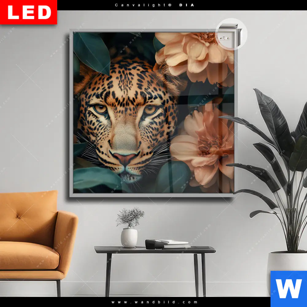 Canvalight® DIA Leuchtbild | Leopard im Blütenmeer | Quadrat