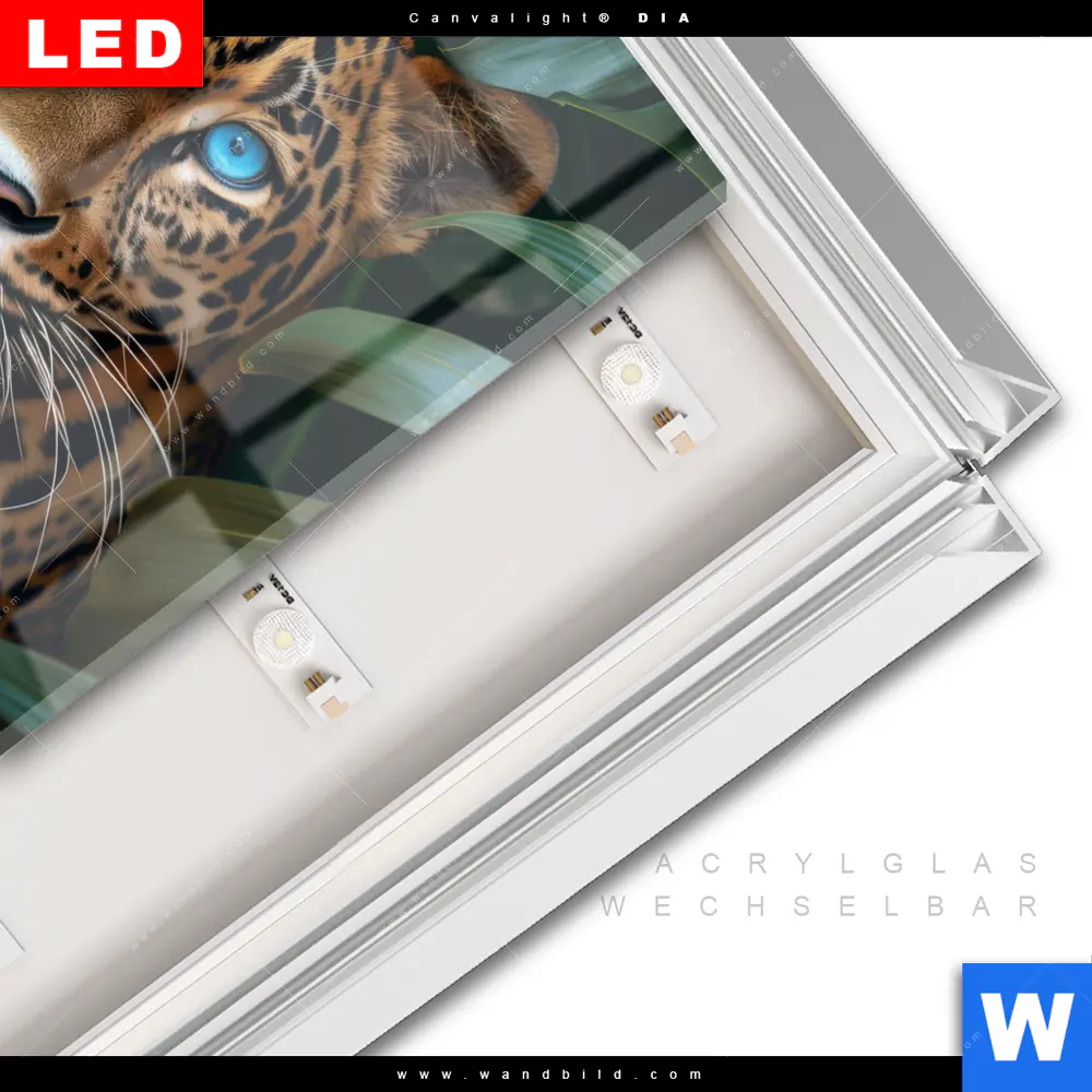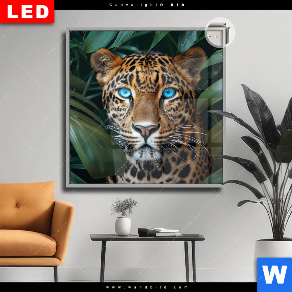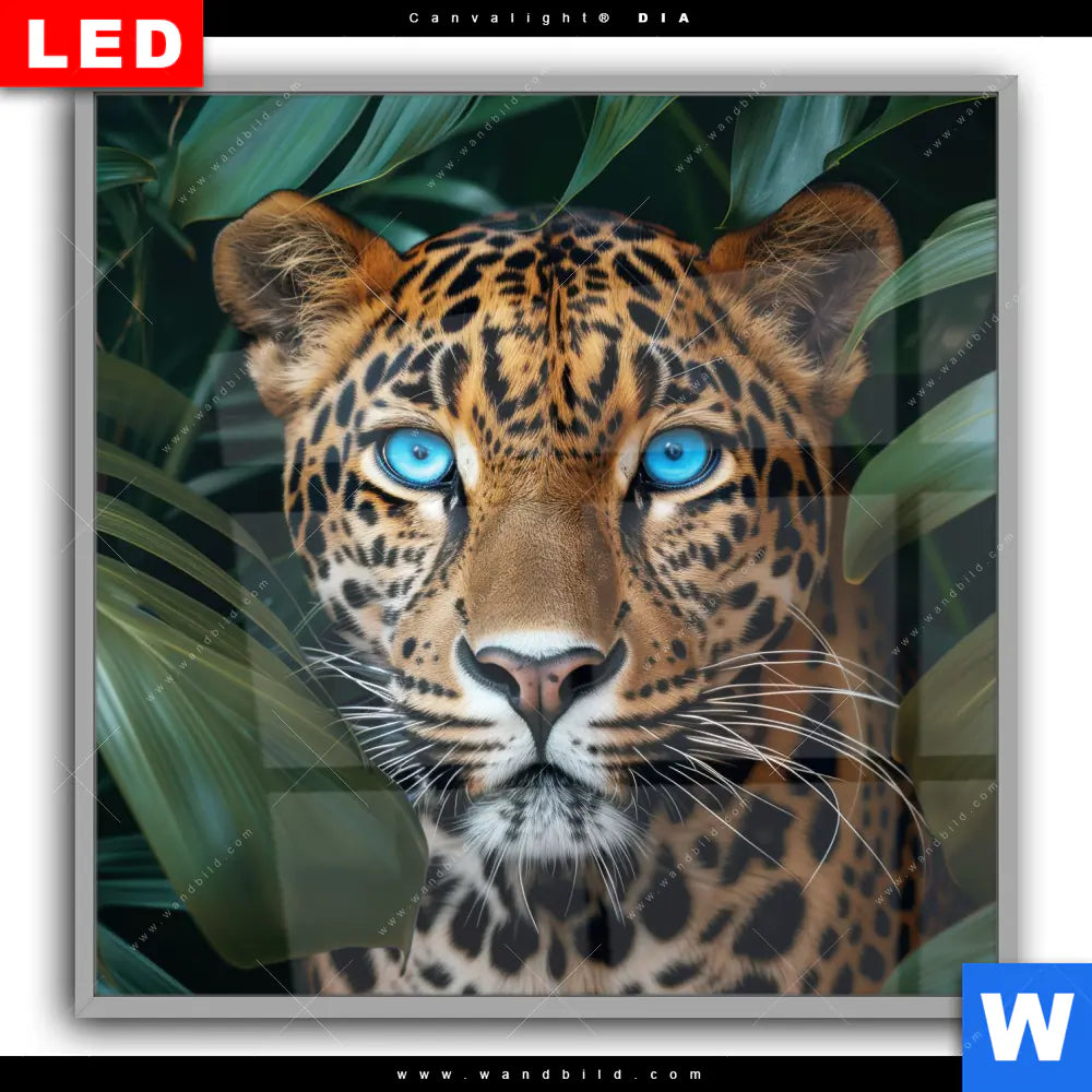 Canvalight® DIA Leuchtbild | Leopard mit blauen Augen | Quadrat