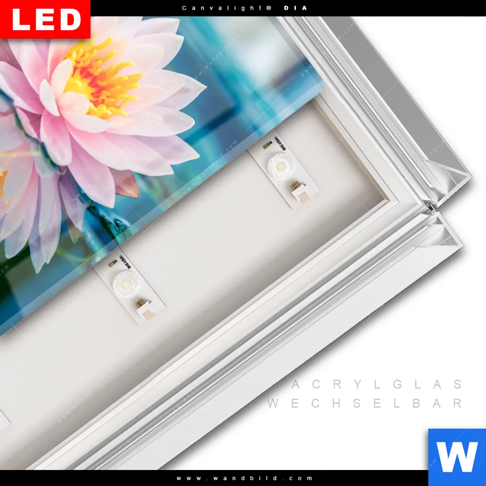 LED-Glasbild mit austauschbarem Acrylglas-Druck (Wechselbild)