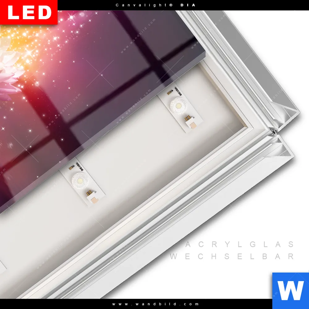 LED-Glasbild mit austauschbarem Acrylglas-Druck (Wechselbild)