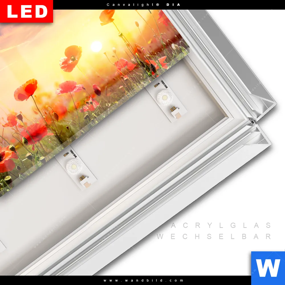 Canvalight® DIA Leuchtbild | Mohnblumenfeld bei Sonnenuntergang | Querformat