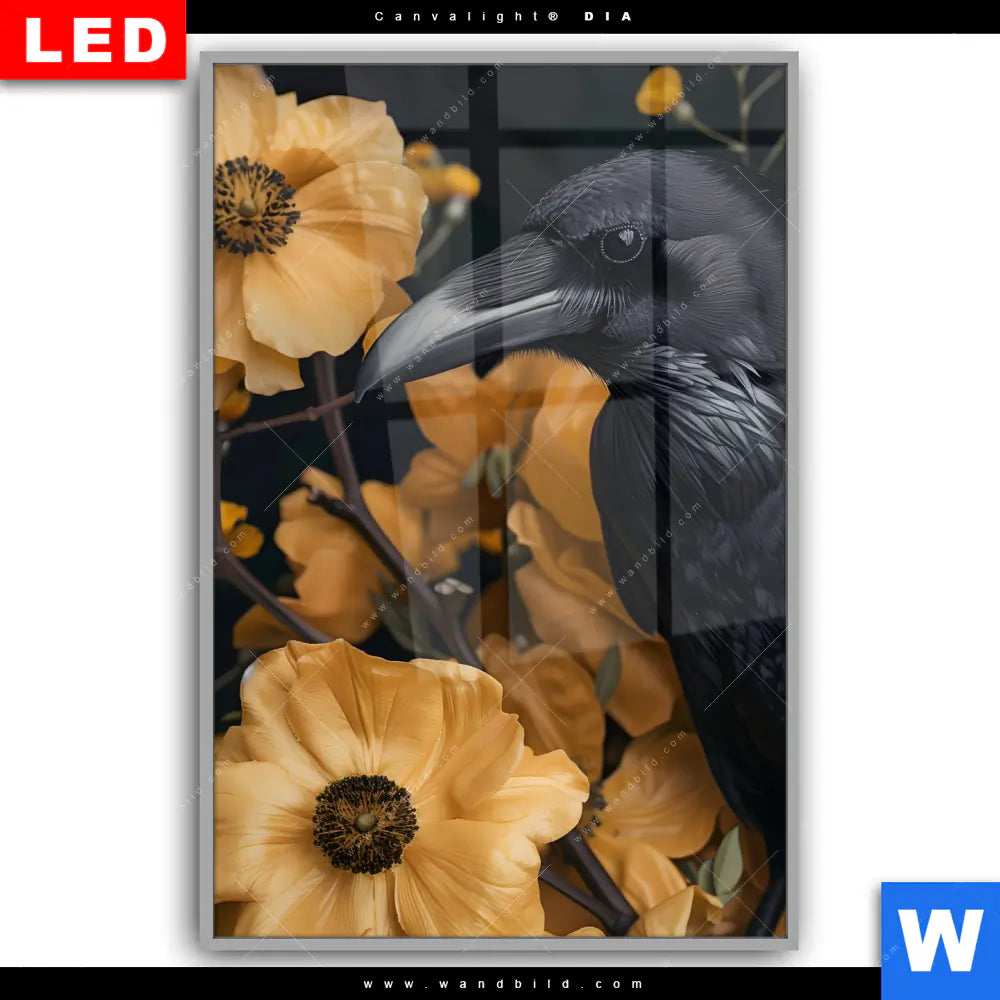 Canvalight® DIA Leuchtbild | Naturbild - Rabe & Blüten | Hochformat