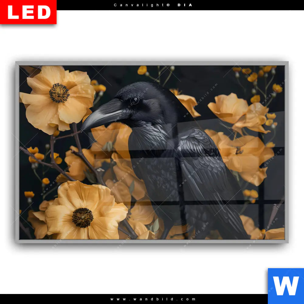Leuchtbild Acrylglas Canvalight® DIA | Naturbild - Rabe & Blüten | Querformat