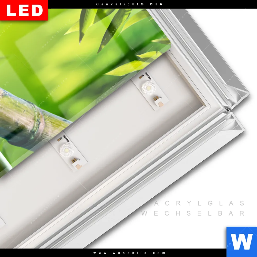 LED-Glasbild mit austauschbarem Acrylglas-Druck (Wechselbild)