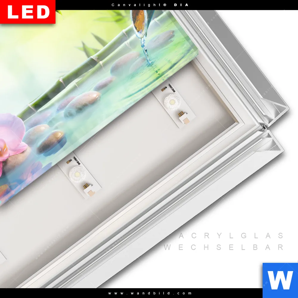 LED-Glasbild mit austauschbarem Acrylglas-Druck (Wechselbild)