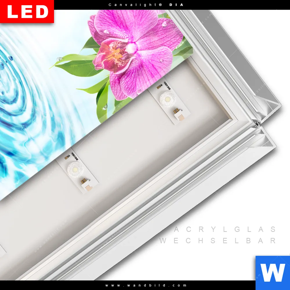 LED-Glasbild mit austauschbarem Acrylglas-Druck (Wechselbild)