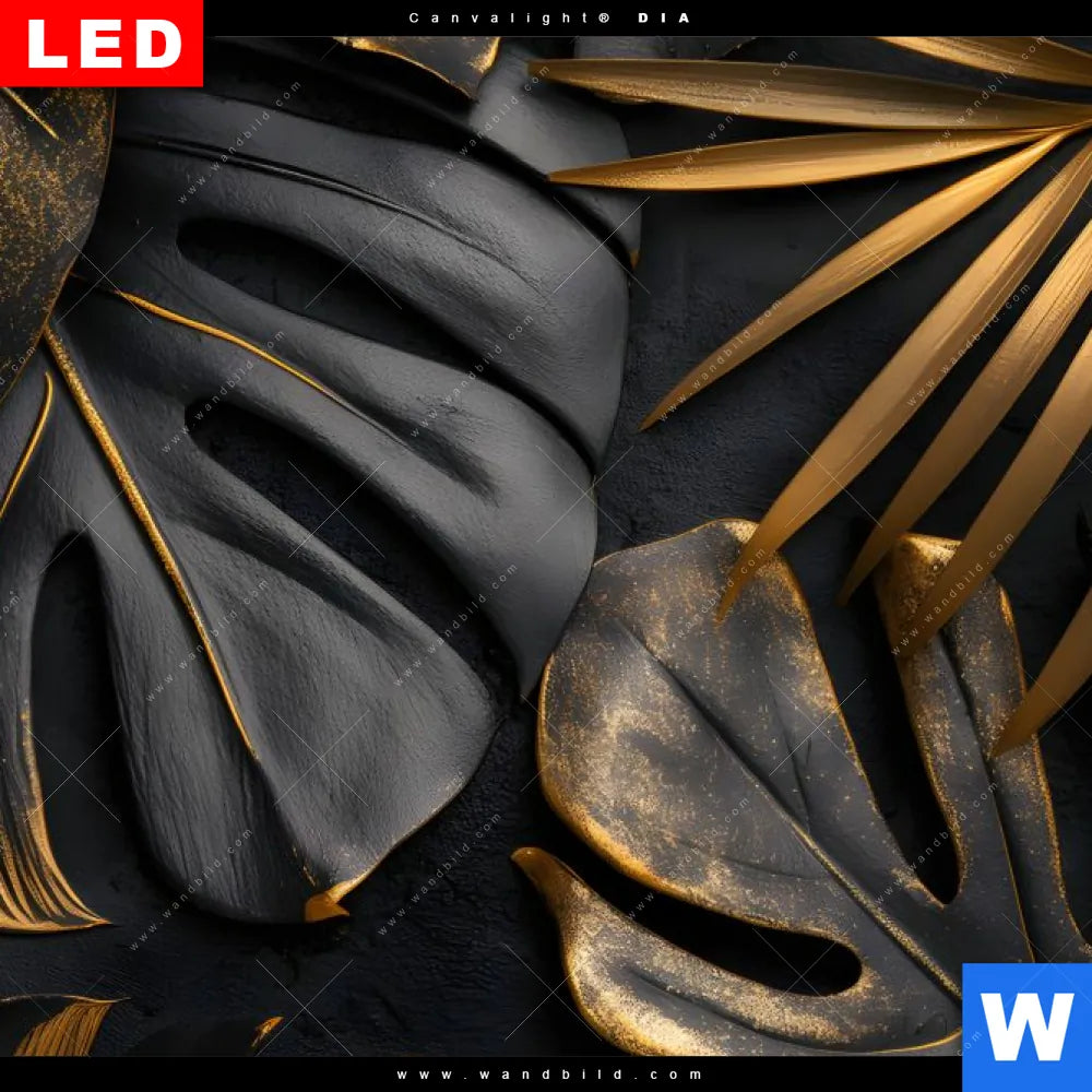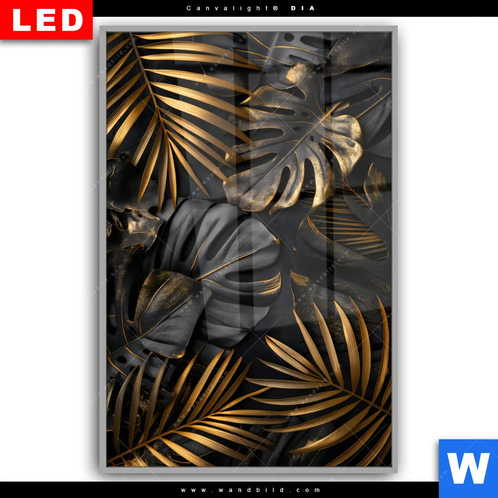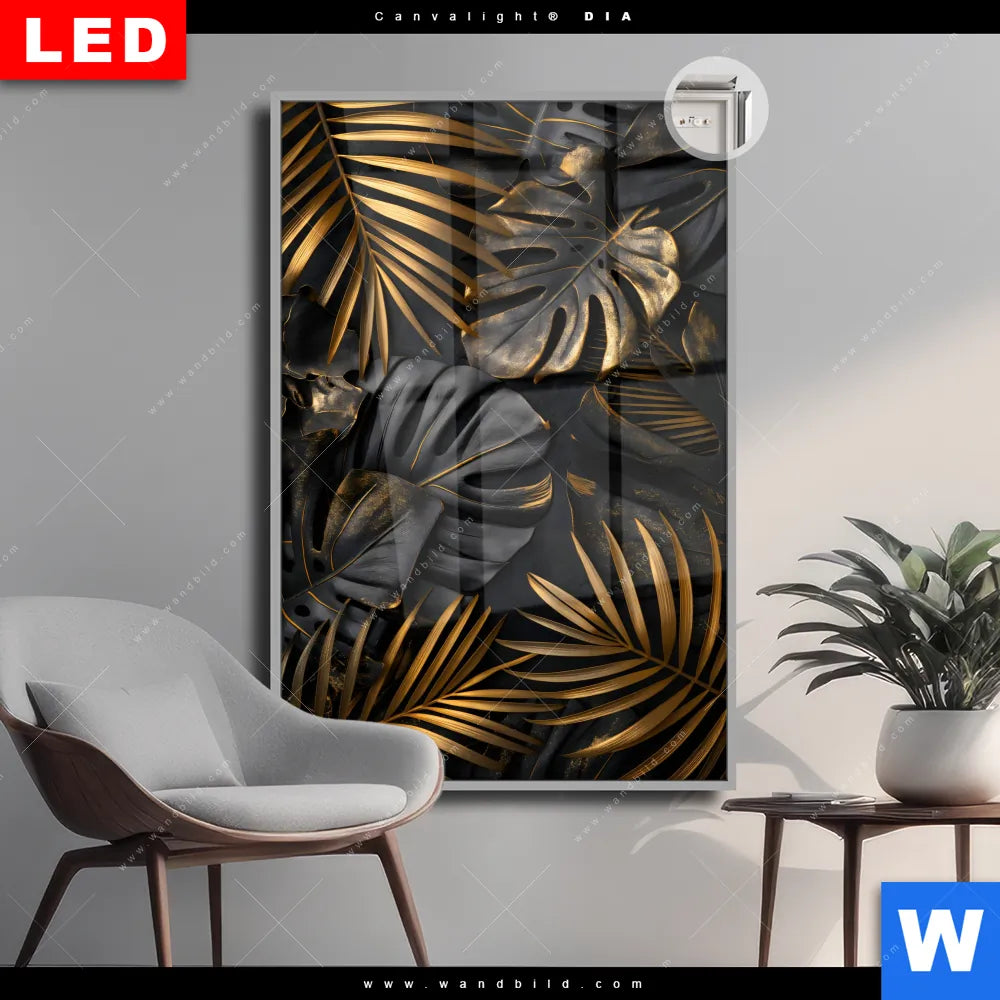 Canvalight® DIA Leuchtbild | Palmenblätter Schwarz Gold | Hochformat