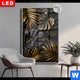 Canvalight® DIA Leuchtbild | Palmenblätter Schwarz Gold | Schmal