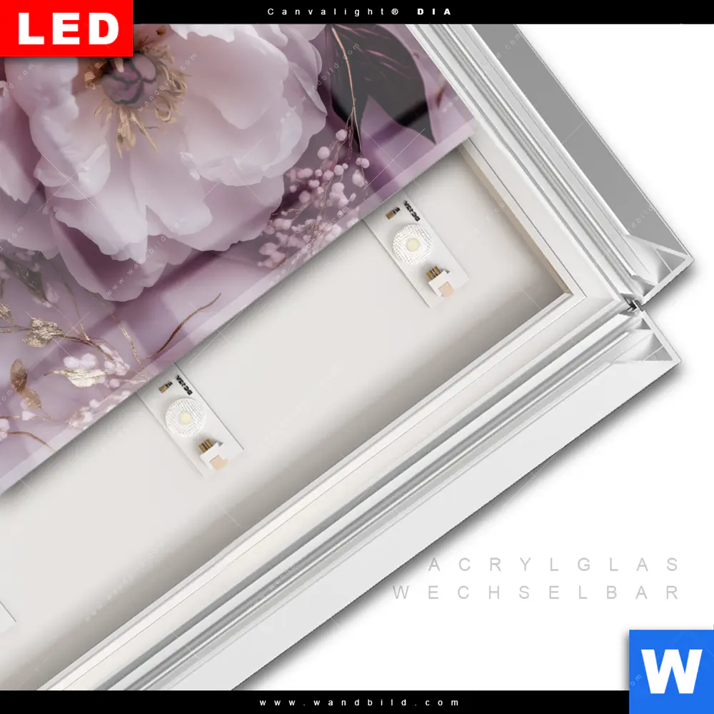 LED-Glasbild mit austauschbarem Acrylglas-Druck (Wechselbild)