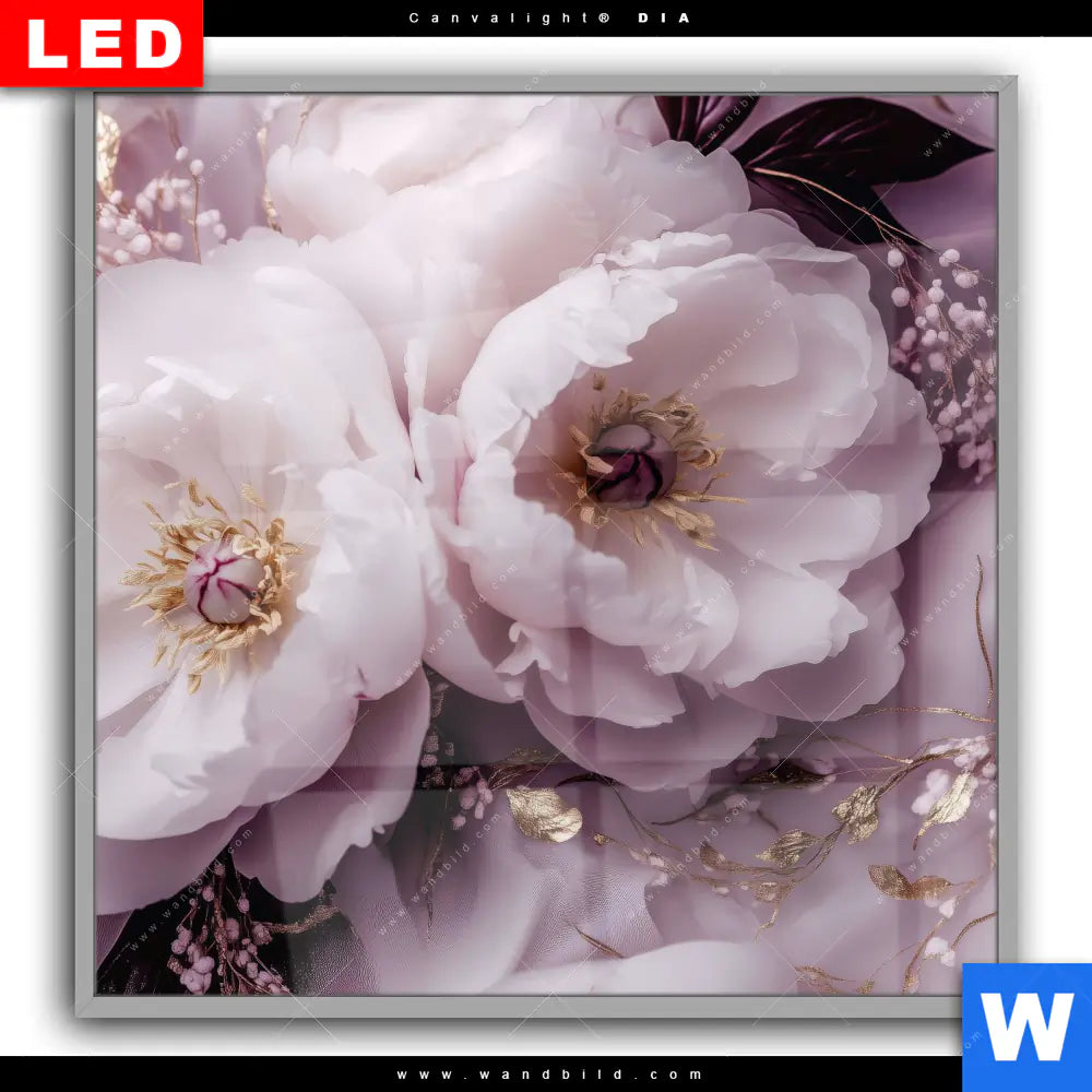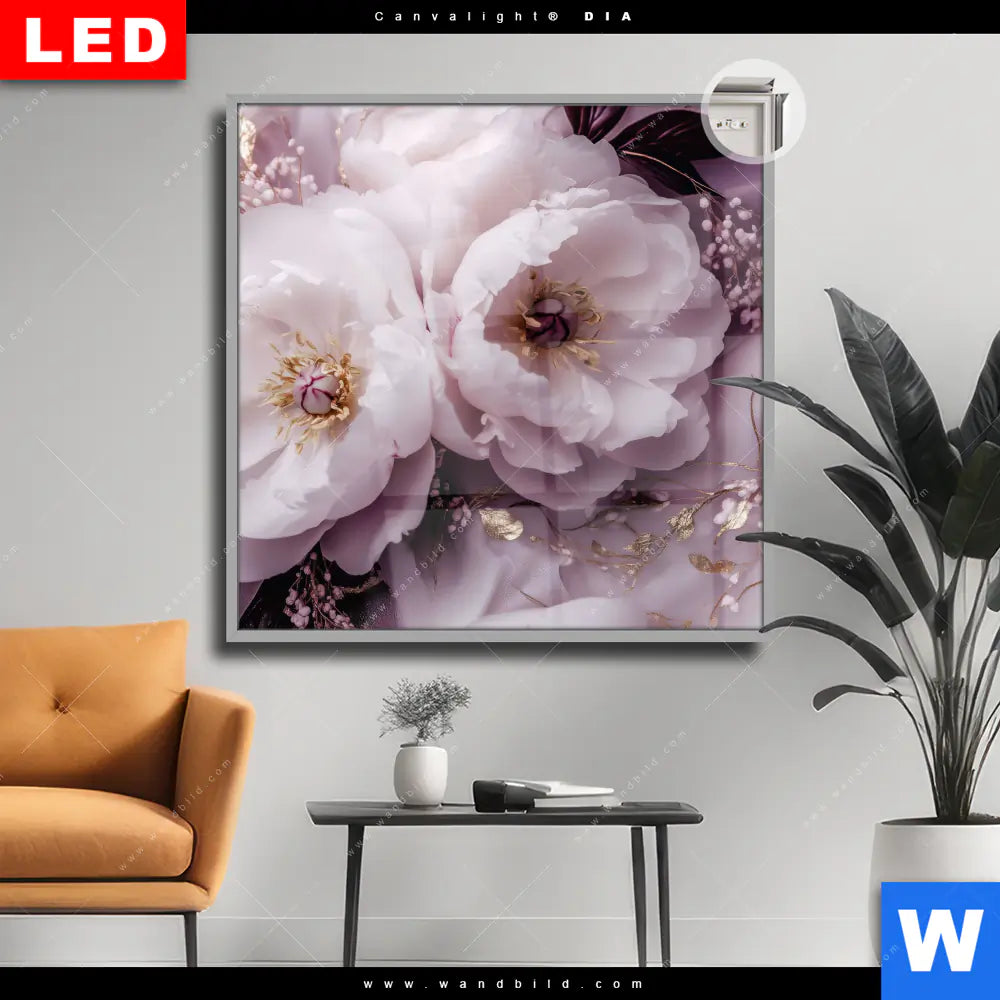 Canvalight® DIA Leuchtbild | Romantische Pfingstrosen | Quadrat