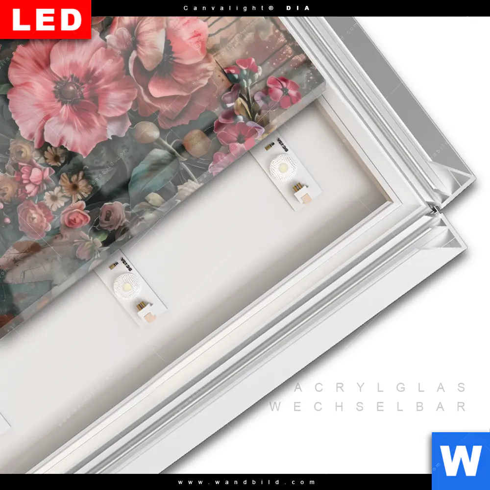 Canvalight® DIA Leuchtbild | Romantische Vintageblumen | Quadrat