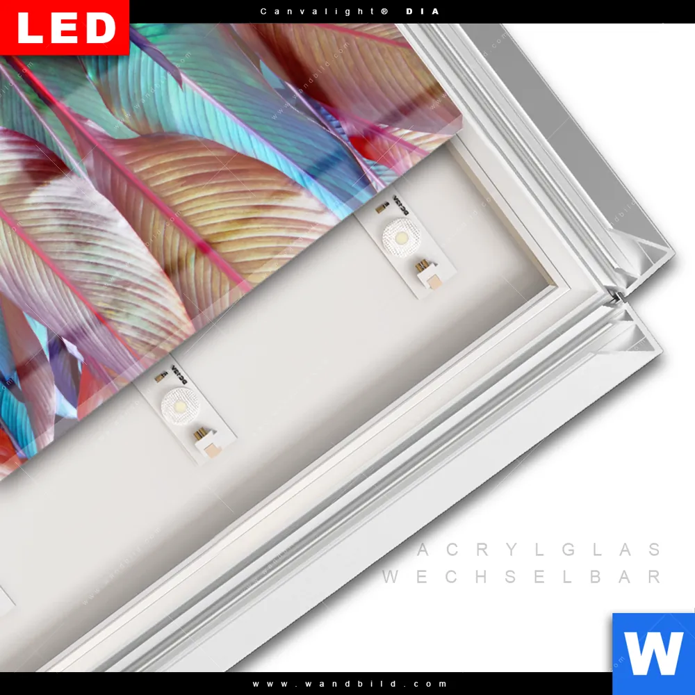 LED-Glasbild mit austauschbarem Acrylglas-Druck (Wechselbild)