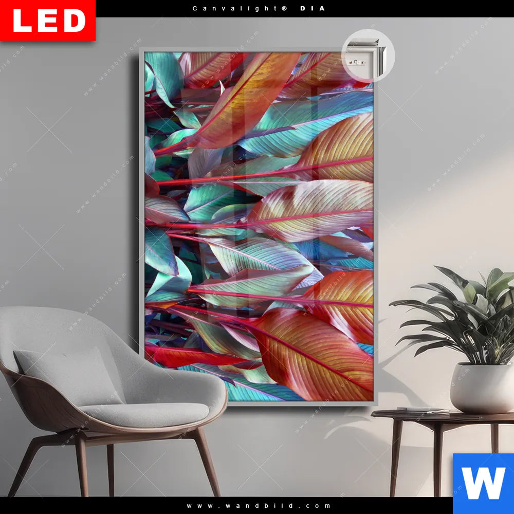Canvalight® DIA Leuchtbild | Rote und smaragdgrüne Blätter | Hochformat