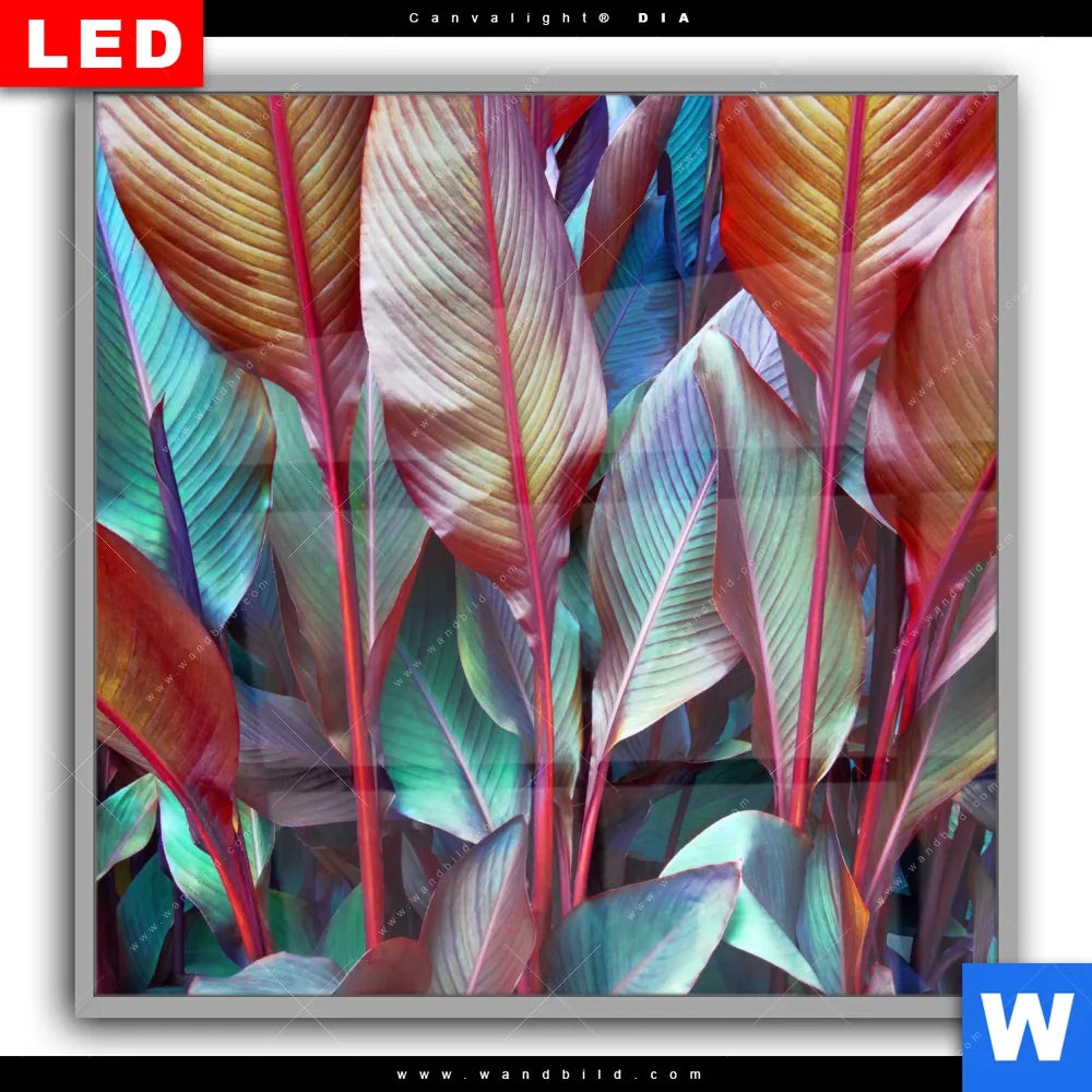 Canvalight® DIA Leuchtbild | Rote und smaragdgrüne Blätter | Quadrat