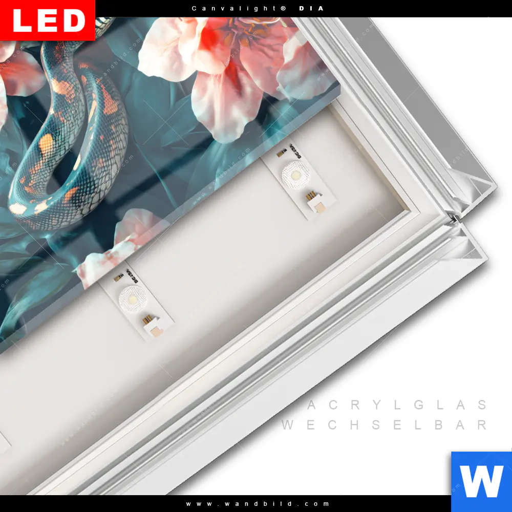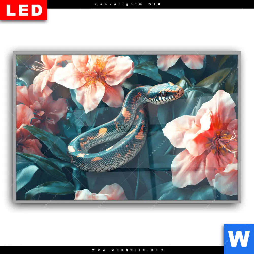 Canvalight® DIA Leuchtbild | Schlange zwischen großen Blüten | Querformat