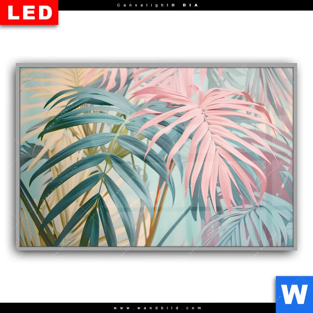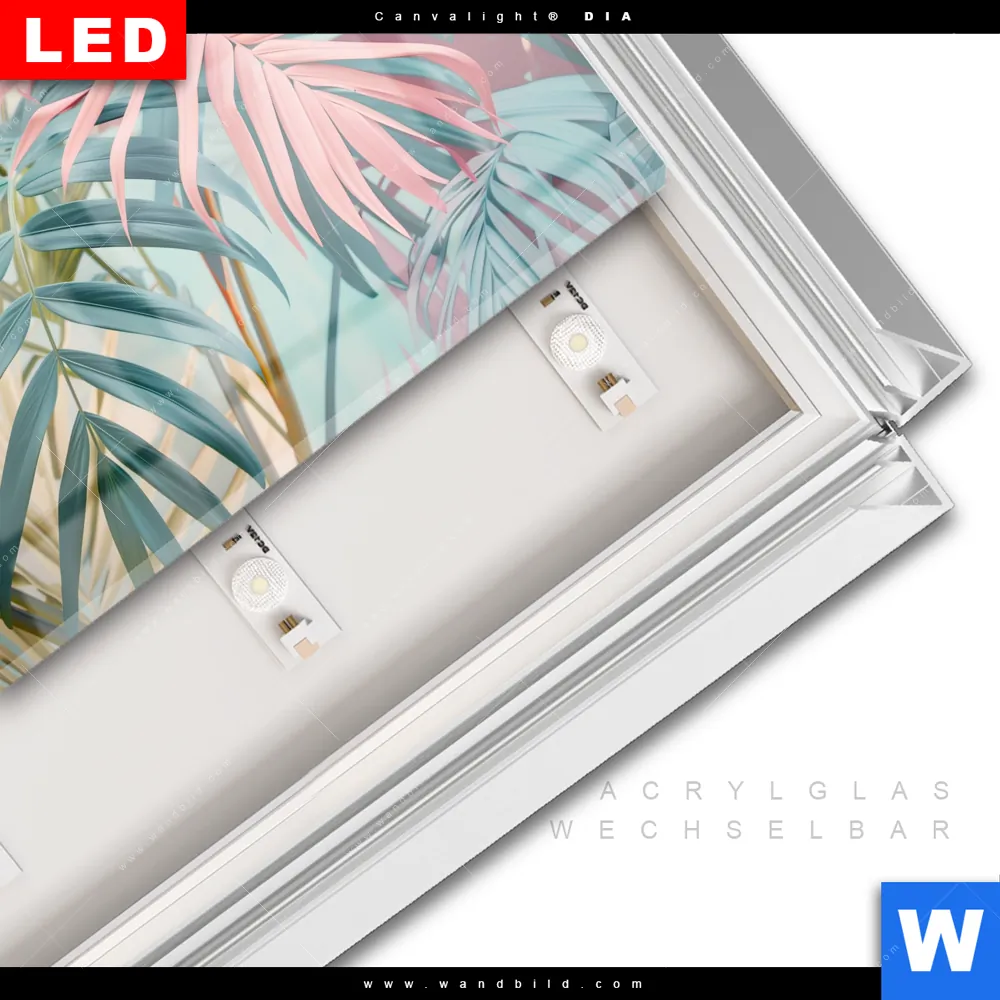 Canvalight® DIA Leuchtbild | Tropische Blätter in Pastellfarben | Querformat