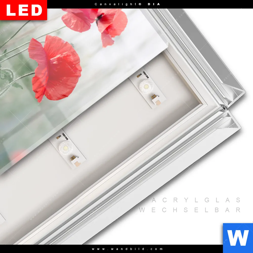 LED-Glasbild mit austauschbarem Acrylglas-Druck (Wechselbild)