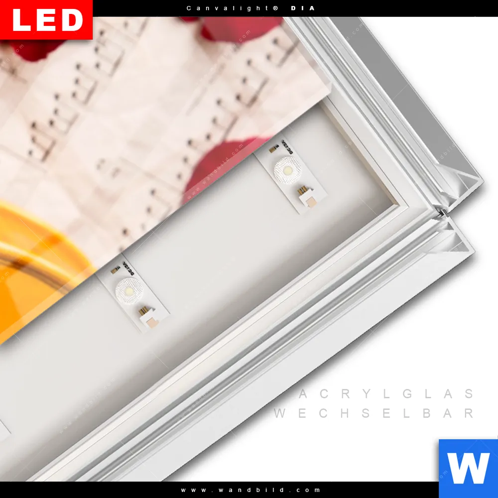 LED | Wechselrahmen-System | Acrylglas-Wechselbilder | DIA-Klapprahmen-Funktion