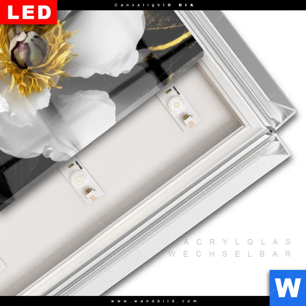 LED-Glasbild mit austauschbarem Acrylglas-Druck (Wechselbild)