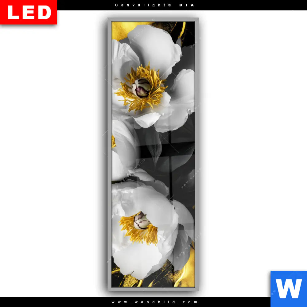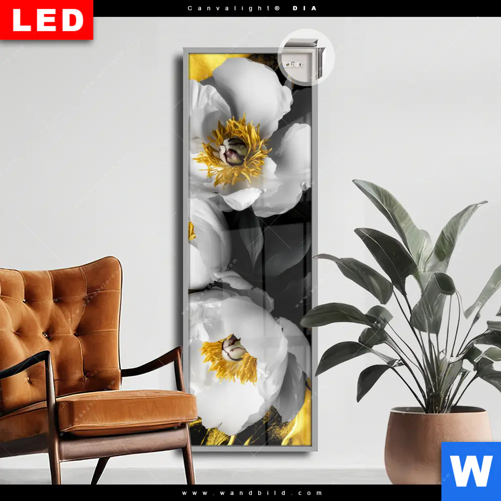 Canvalight® DIA Leuchtbild | Weiße Blumen mit Gold | Schmal