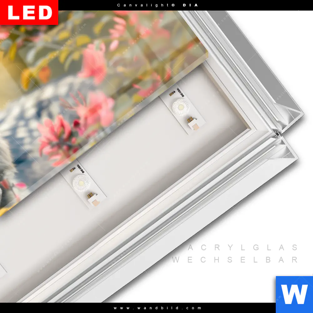 LED-Glasbild mit austauschbarem Acrylglas-Druck (Wechselbild)