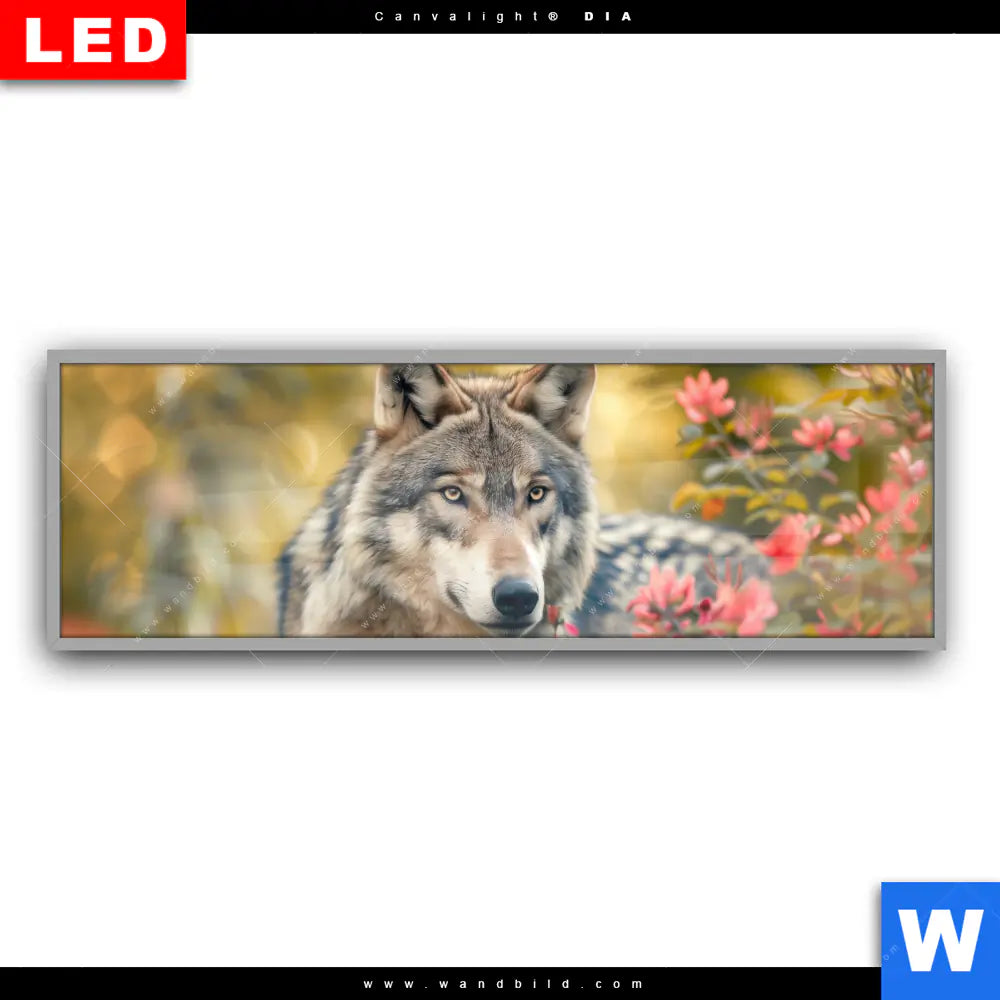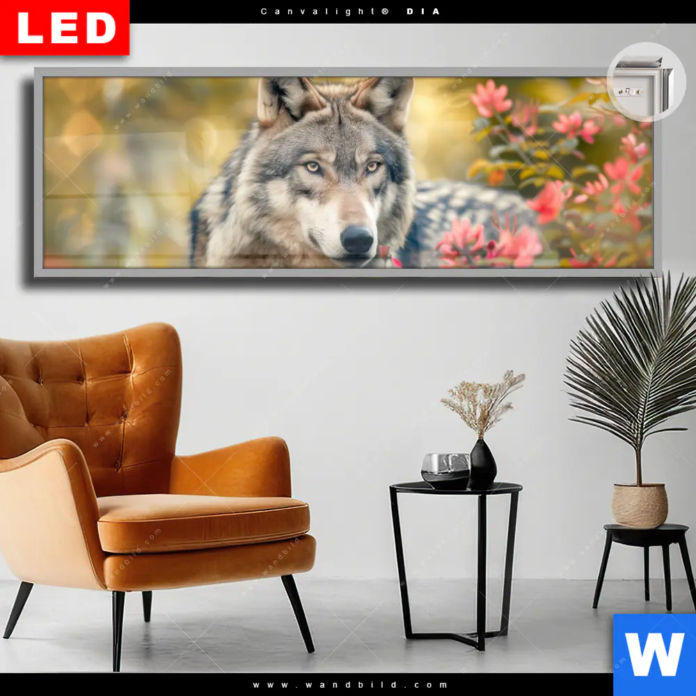 Canvalight® DIA Leuchtbild | Wolfsblick im Frühling | Panorama
