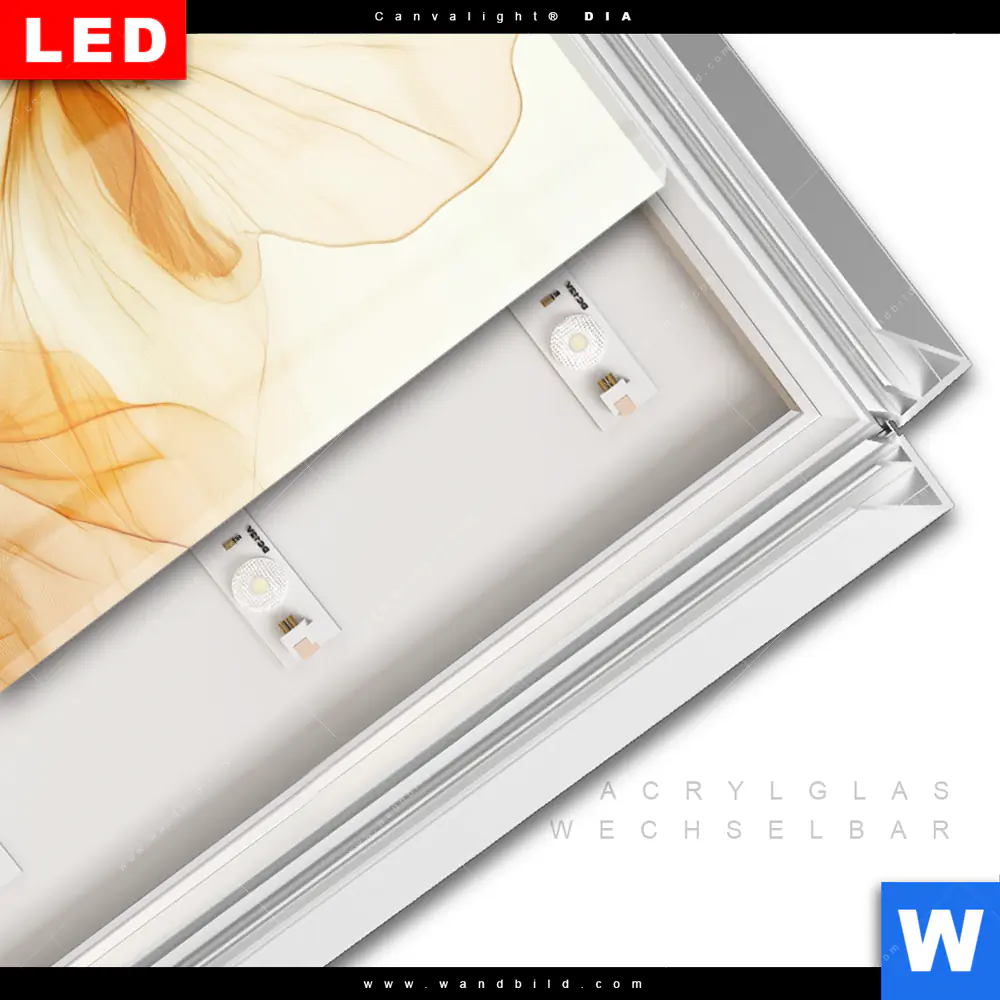 LED-Glasbild mit austauschbarem Acrylglas-Druck (Wechselbild)