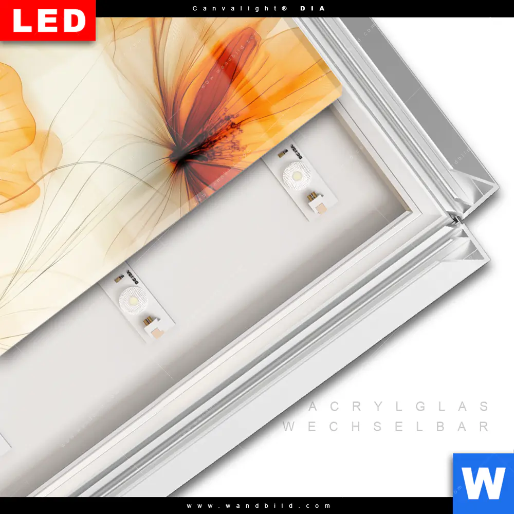 LED-Glasbild mit austauschbarem Acrylglas-Druck (Wechselbild)