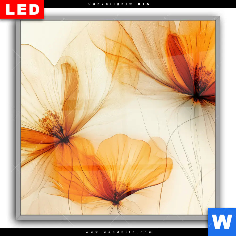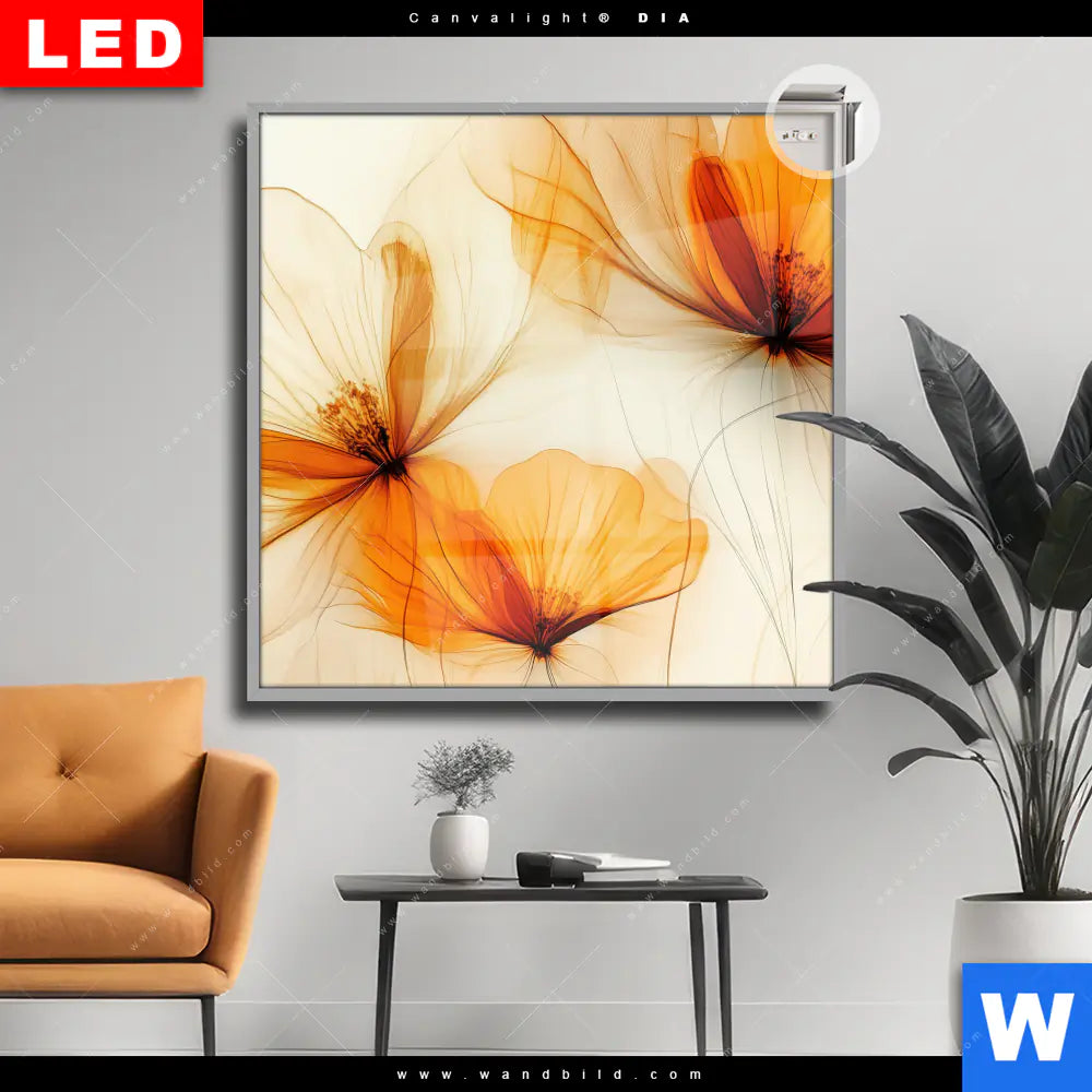 Canvalight® DIA Leuchtbild | Zarte Blüten in Orange | Quadrat