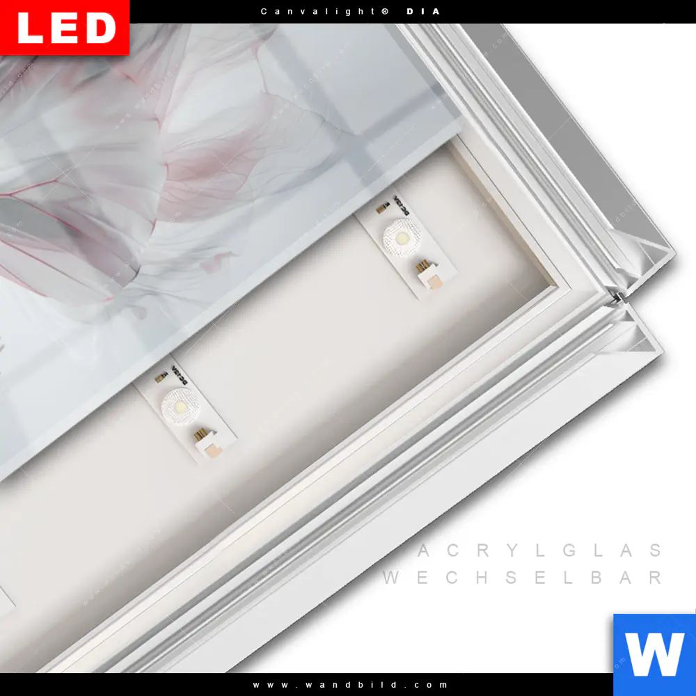 LED-Glasbild mit austauschbarem Acrylglas-Druck (Wechselbild)
