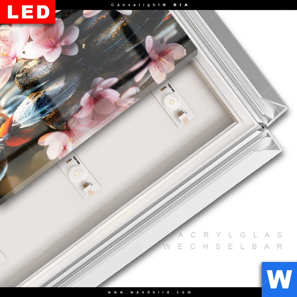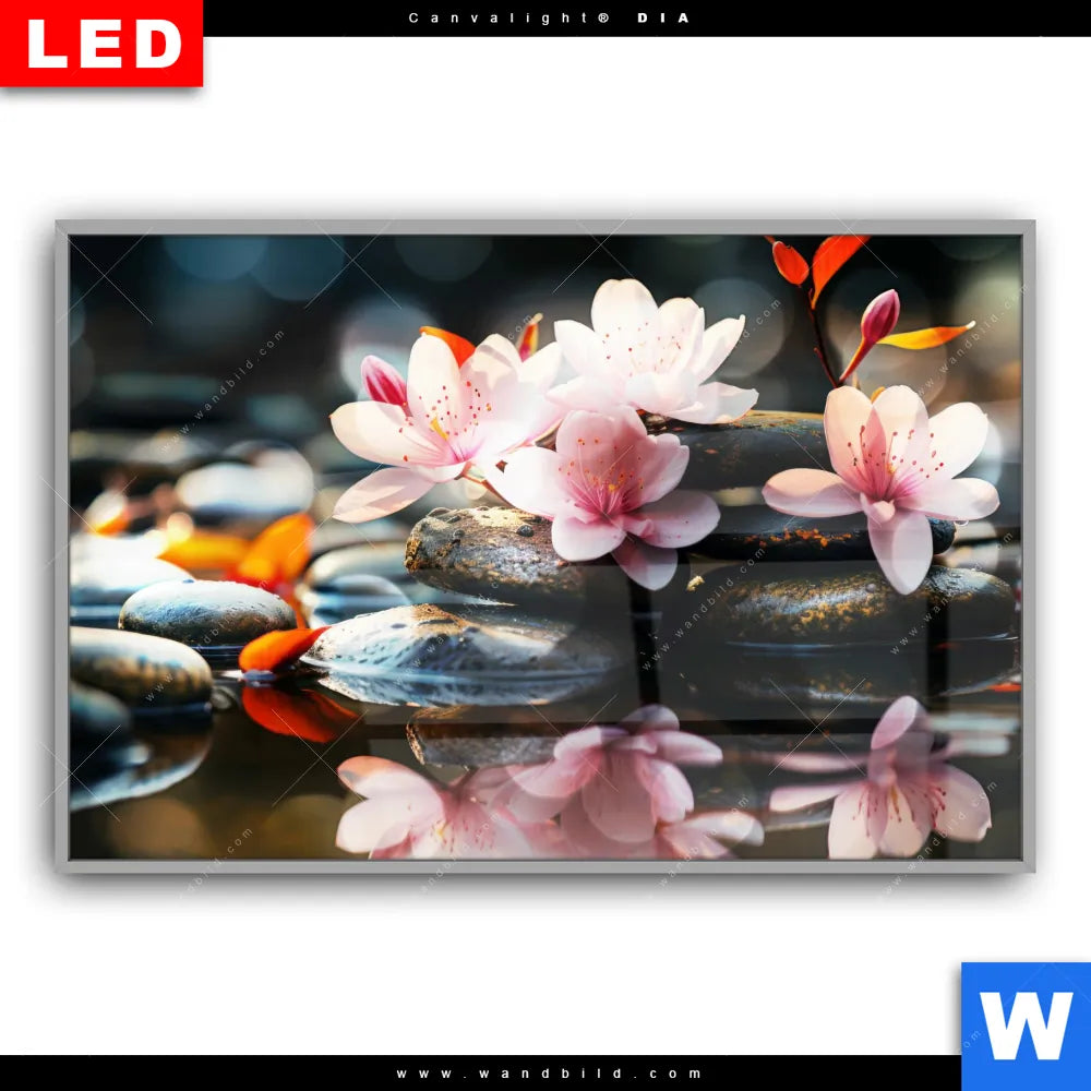 Canvalight® DIA Leuchtbild | Zen Steine mit Blumen | Querformat